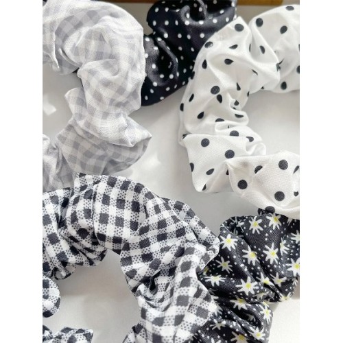 5 Pcs Polka Dot & Gingham Print Scrunchies